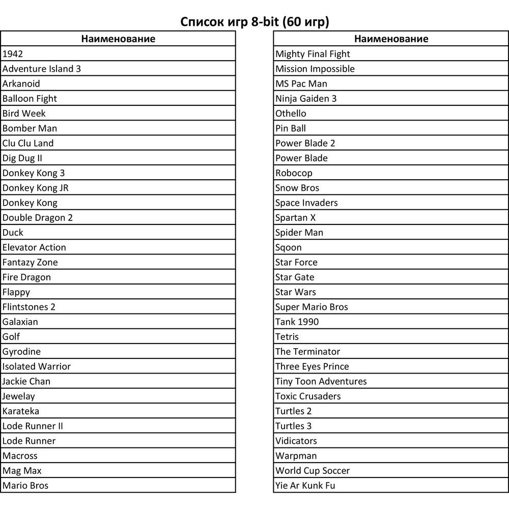 - Игровая консоль 8-bit;