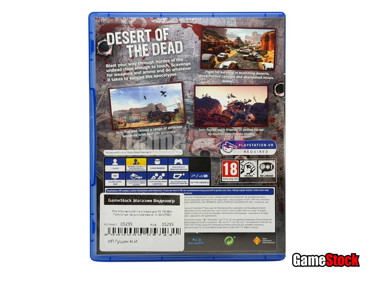 Будьте всегда на шаг впереди и не забывайте искать боеприпасы и новое, еще более мощное оружие. Игра Arizona Sunshine разрабатывалась исключительно для виртуальной реальности и полностью совместима с уникальным контроллером прицеливания PlayStation VR, а также с PlayStation Move и DUALSHOCK 4. Возьмите в руки разнообразное оружие, цельтесь, стреляйте и перезаряжайтесь так, как делали бы это в реальной жизни!