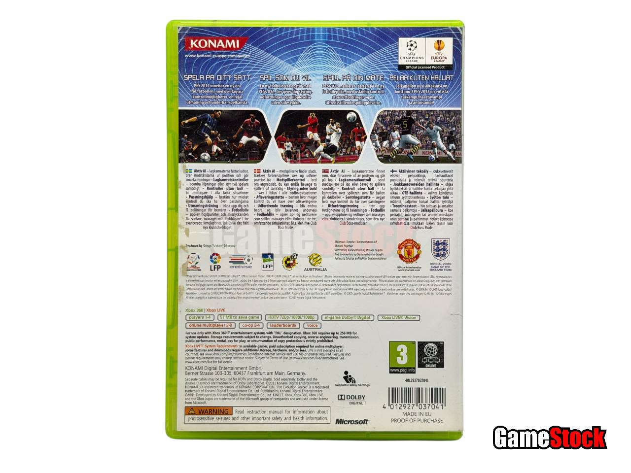 В новом сезоне Pro Evolution Soccer станет еще более реалистичным, чем раньше благодаря существенным улучшениям системы управления и искусственного интеллекта. В игре, лицензированной Лигой чемпионов УЕФА и Европейской Лигой УЕФА, представлены все звезды мирового футбола с учетом всех особенностей их игрового стиля и набором финтов. Усовершенствованная анимация и техника освещения, широкий выбор стилей игры и тактик, новые возможности для настройки пасов и розыгрыша стандартных положений — PES 2012 предоставляет игрокам возможность приобщиться к настоящему профессиональному футболу.